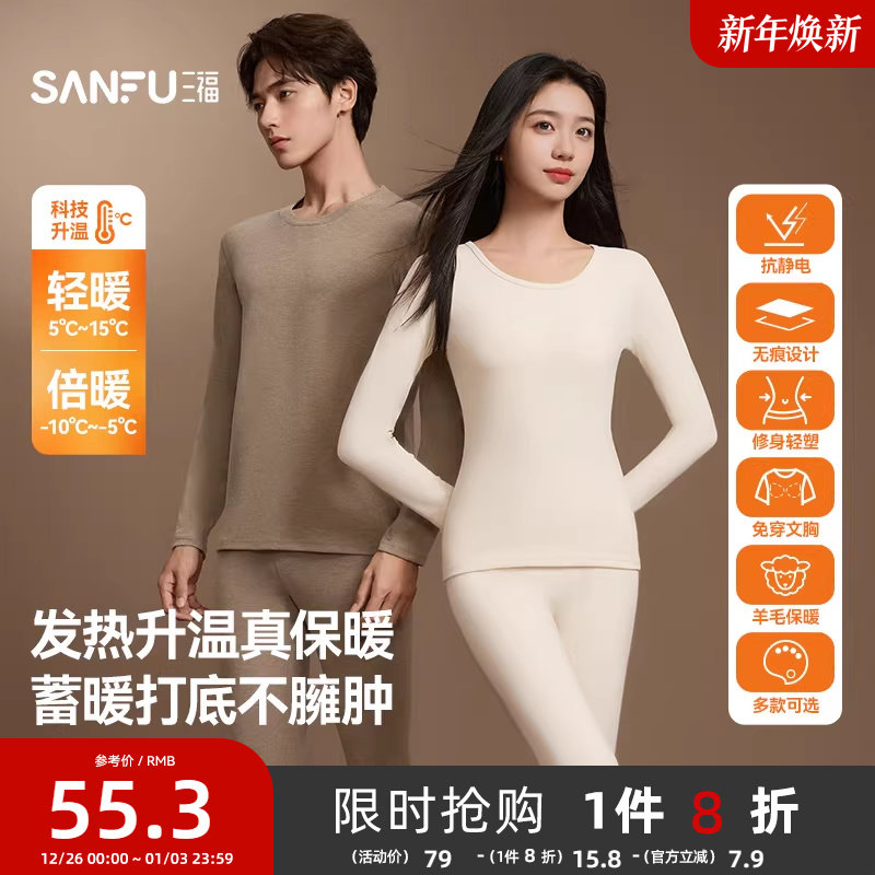 三枪秋衣男纯棉薄款打底棉毛衫裤保暖内衣女秋裤长袖抗静电保暖裤