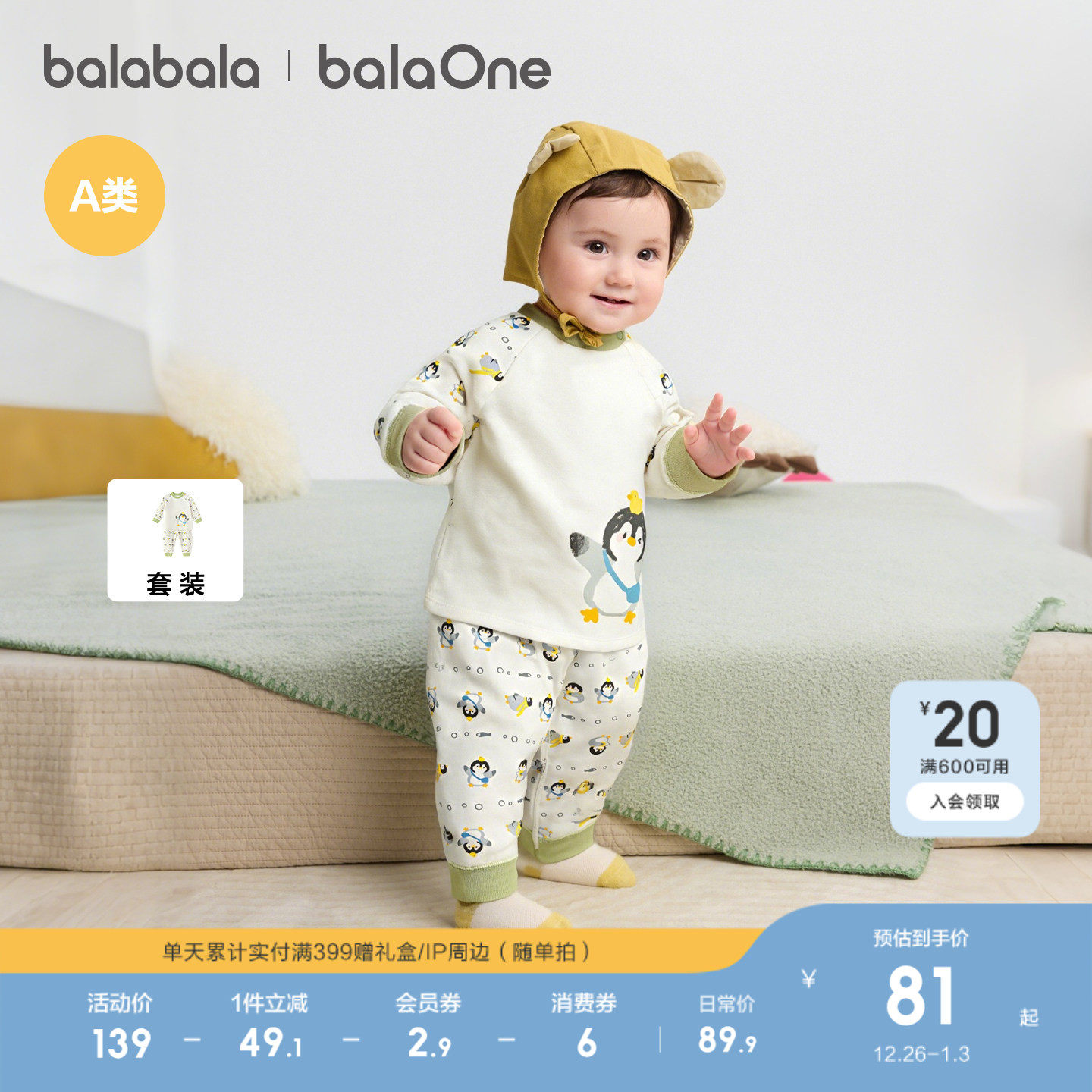 巴拉巴拉童装婴儿内衣套装男女童长袖睡衣2025新款秋冬保暖秋衣萌
