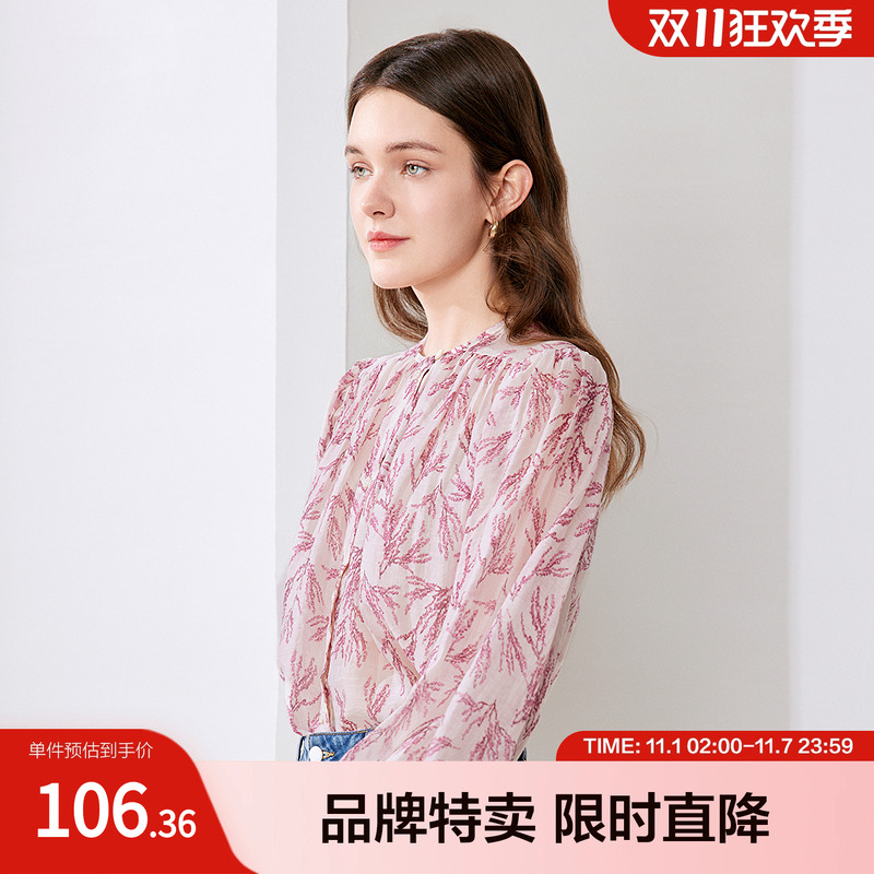 betu百图气质名媛印花衬衫新款款时尚印花韩版气质灯笼袖衬衫女