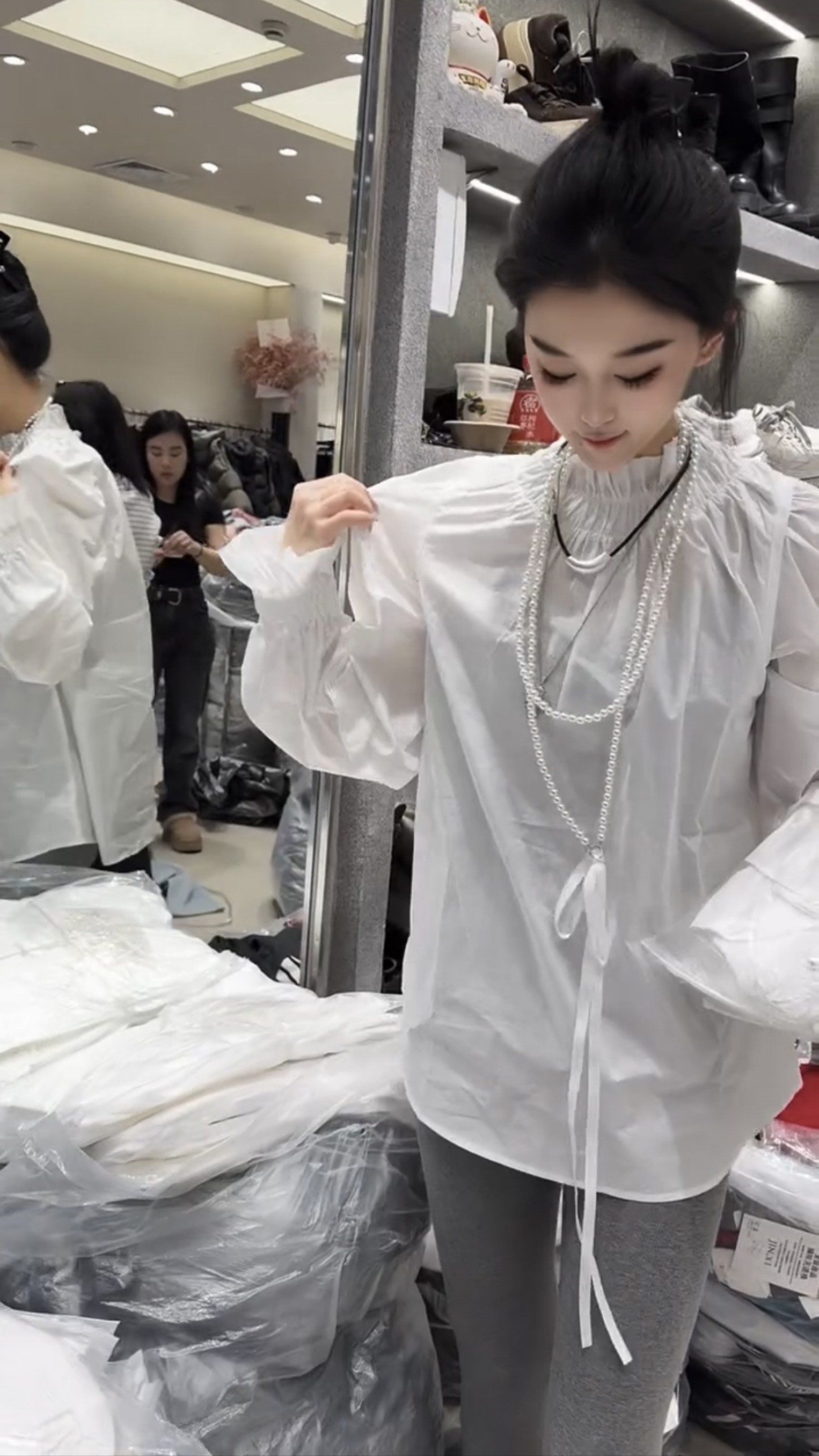 白色衬衫女2026春季新款韩版高级感洋气长袖木耳领宽松灯笼袖上衣