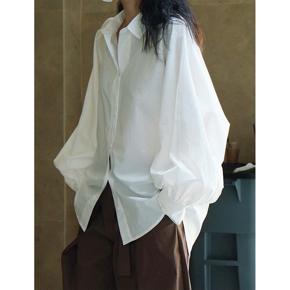 2025春秋韩版简约ins灯笼袖翻领衬衫宽松廓形遮肉显瘦休闲上衣女