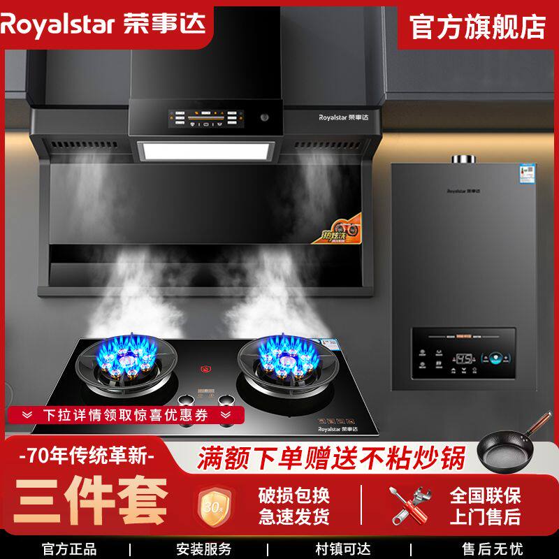 荣事达油烟机燃气灶套餐家用抽油烟机煤气灶套装烟灶热三件套组合