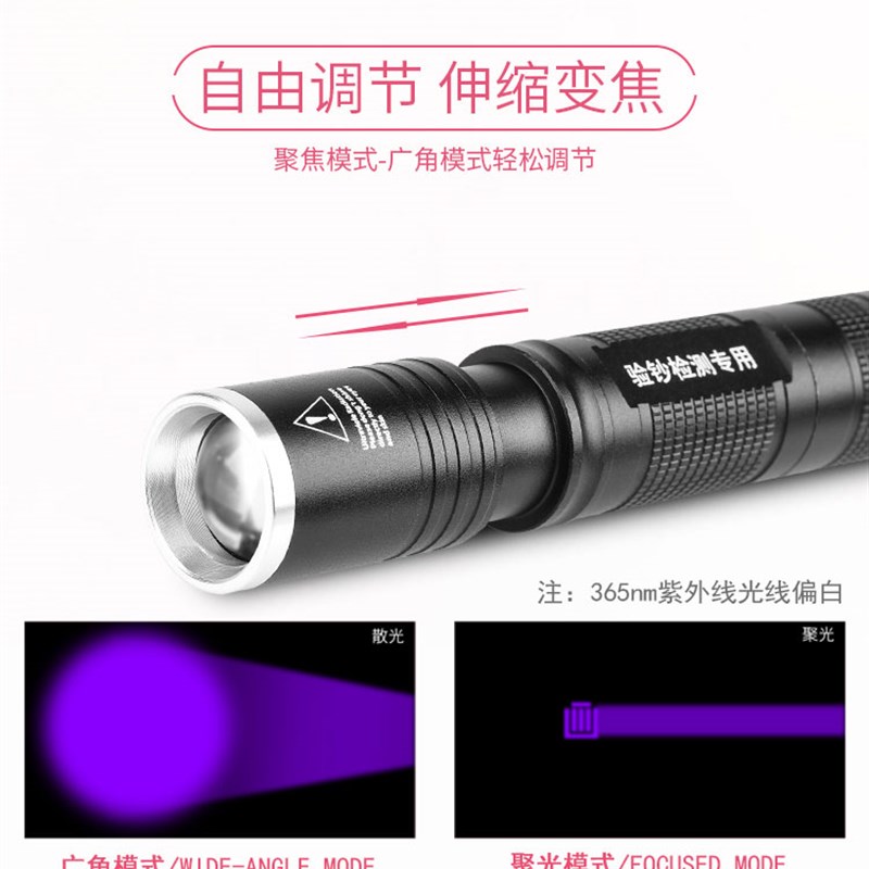 多功能照钱验钞灯可充电测荧光剂检测笔强光照明手电筒小型便携式