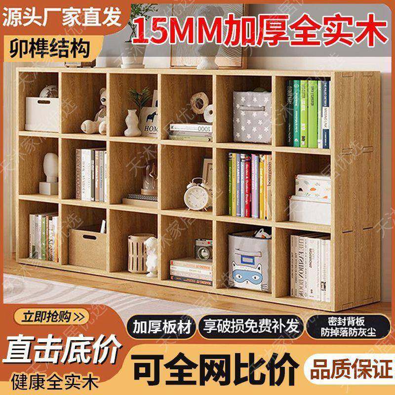 实木书架儿童书架加厚置物架落地组合格子柜幼儿园储物收纳书柜厂