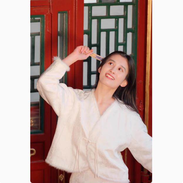 短外套 秋冬女装新款夹棉国风毛绒包边V领精美典雅气质百搭潮上衣