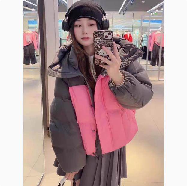 鸭绒羽绒服 冬季女装新款连帽拼色甜美减龄加厚保暖面包服 外套女