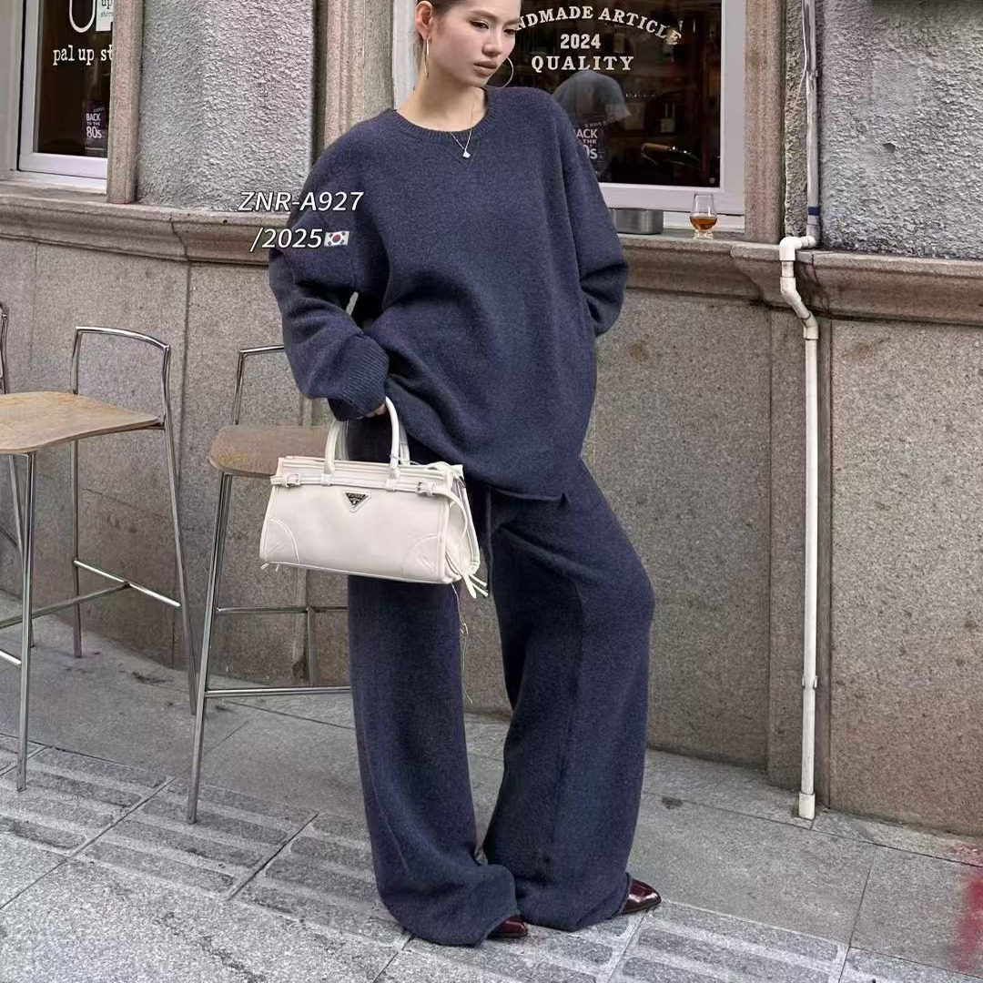 高端2025秋冬新款羊绒针织套装女毛衣宽松阔腿裤时尚羊毛两件套潮
