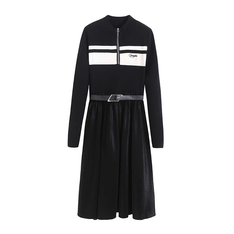连衣裙 秋季女装新款通勤针织拼接设计感气质时尚休闲百搭中长裙