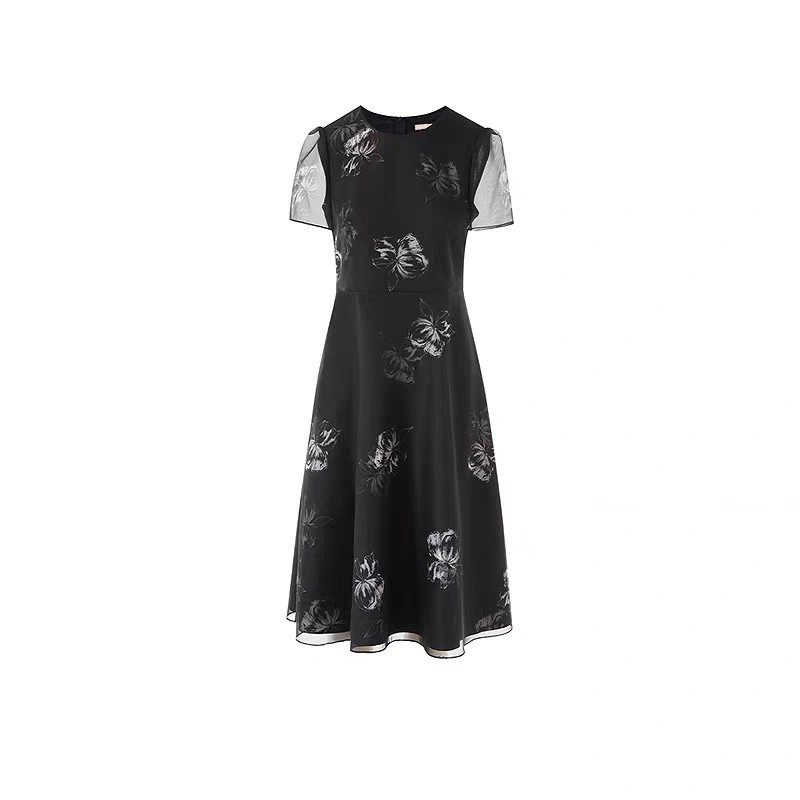 - 刺绣欧根纱连衣裙女