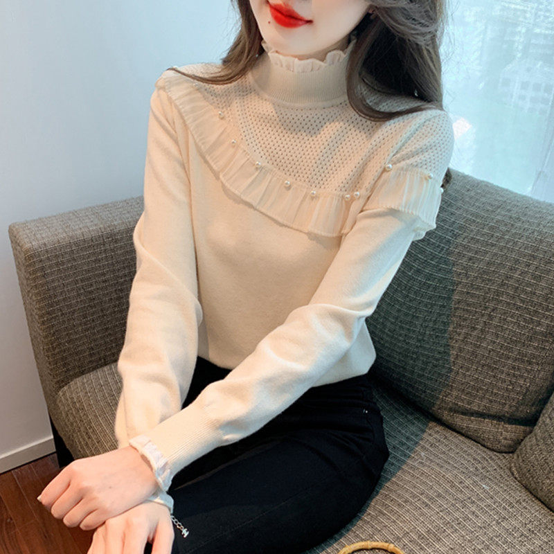 小香风半高领荷叶边针织衫女2025秋冬季新款洋气长袖内搭打底上衣