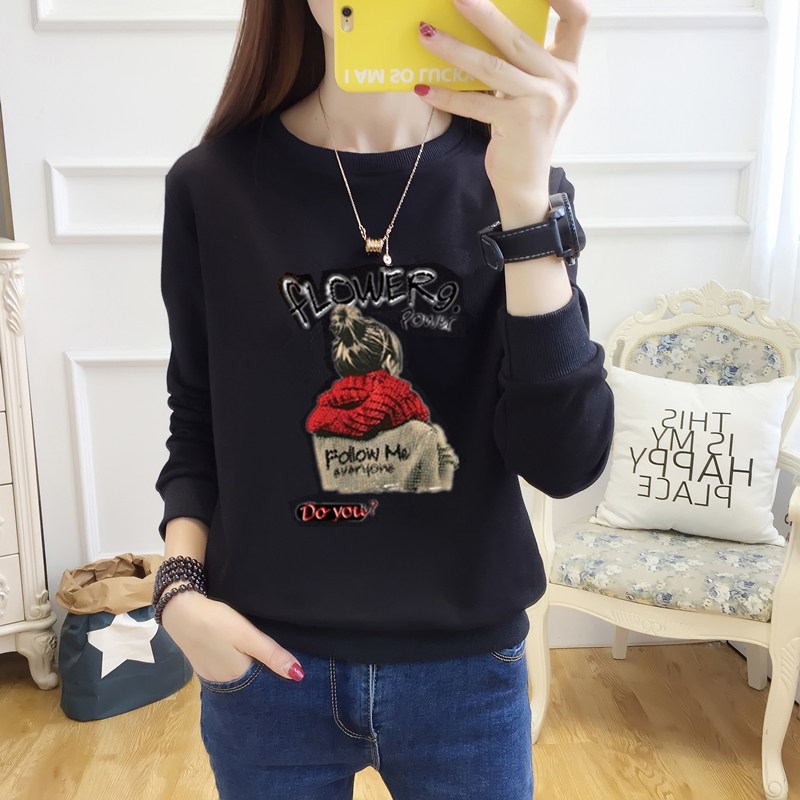 2025年春季新款高级感黑色卫衣女士薄款洋气减龄秋衣外穿休闲上衣