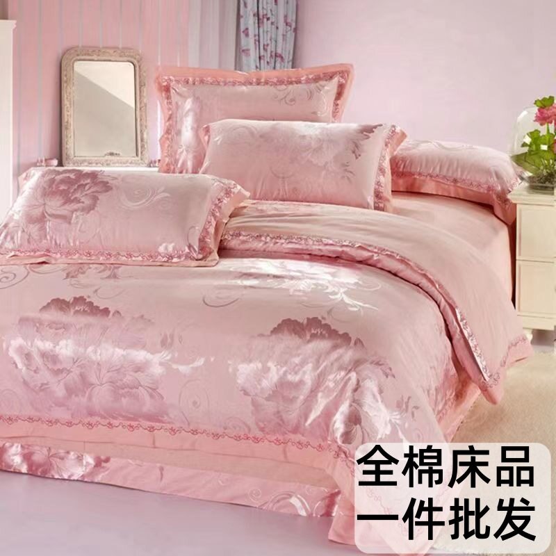 60支全棉四季款四件套欧式婚庆纯棉床单1.8m被套贡缎刺绣提花天丝