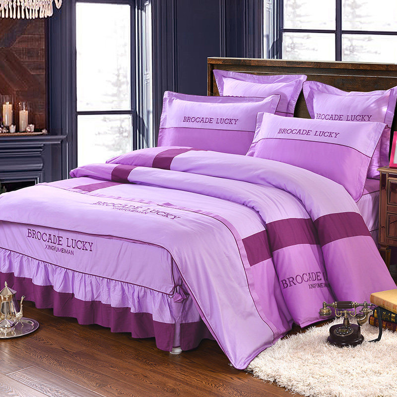 结婚婚庆被单四件套全棉纯棉 简约套1.8m米床床裙式床罩女公主风