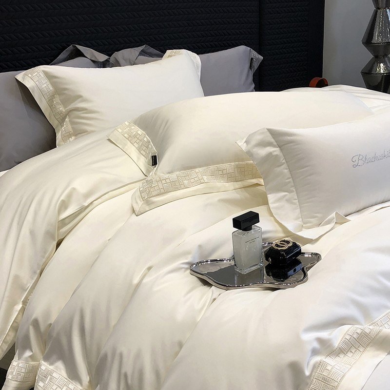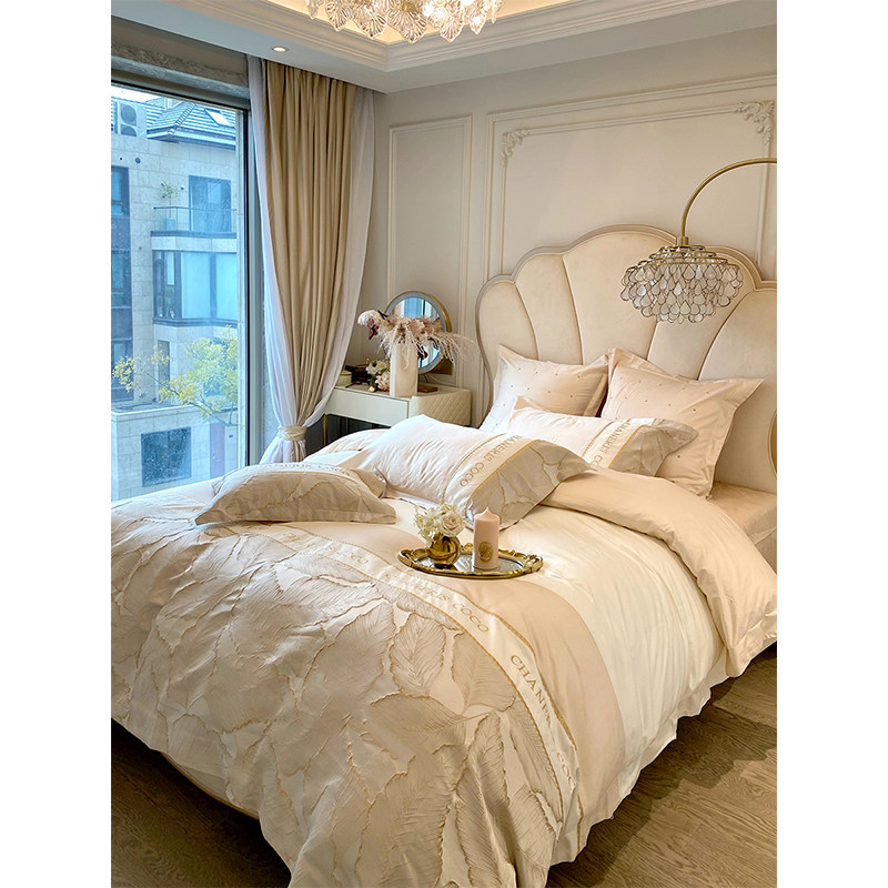 轻奢纯棉四件套100S新疆长绒棉提花刺绣被套全棉柔软1.8m床上用品