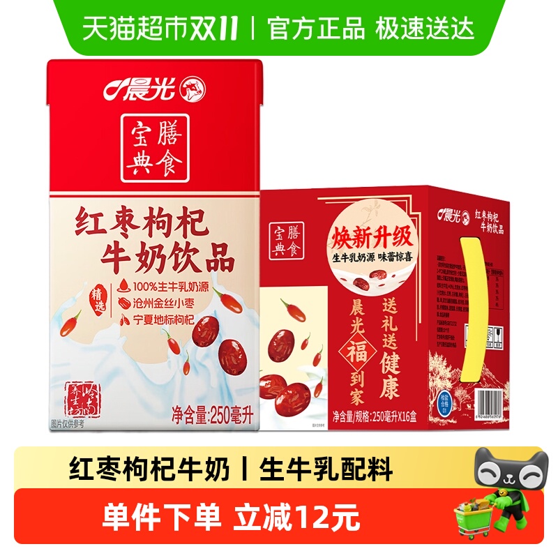 超值250ML*16晨光牛奶红枣枸杞奶学生早餐奶整箱全脂甜奶礼盒送礼