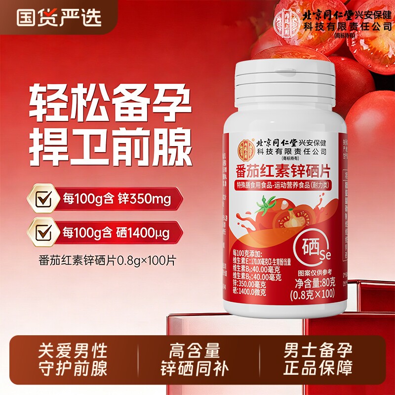 北京同仁堂番茄红素锌硒片男士备孕吃补提高精子质量活力男性3yw