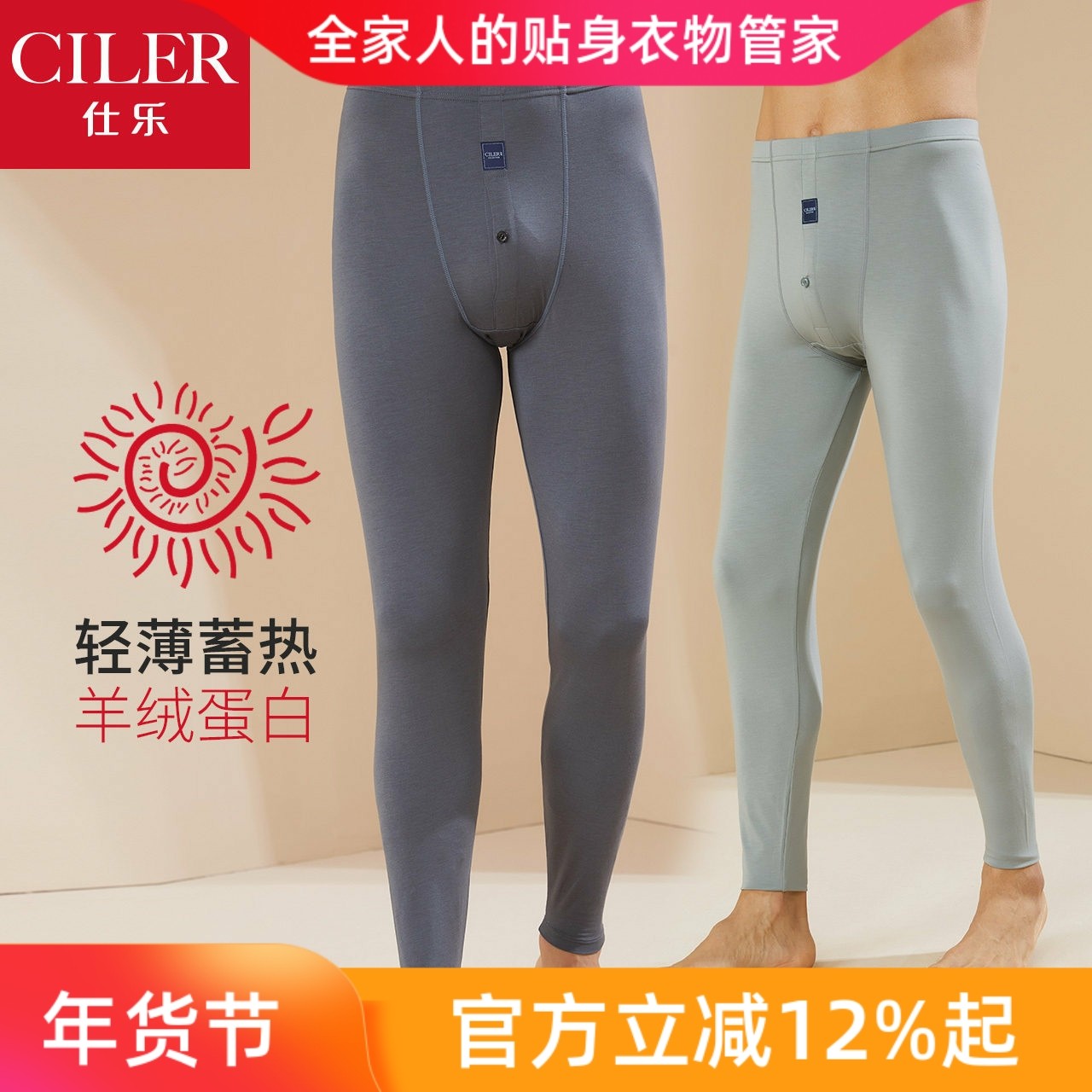 仕乐羊绒蛋白超薄单裤男款单件发热秋裤大码高弹舒适贴身线裤内裤