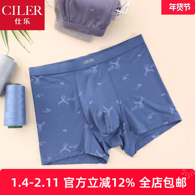 仕乐男无痕印花内裤莫代尔平角裤四角短裤头高弹舒适轻薄贴身裤衩