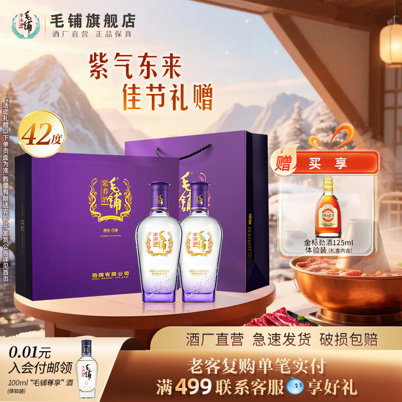毛铺酒官方旗舰店42度紫荞酒500ml*2瓶礼盒装苦荞整箱白酒基酒水