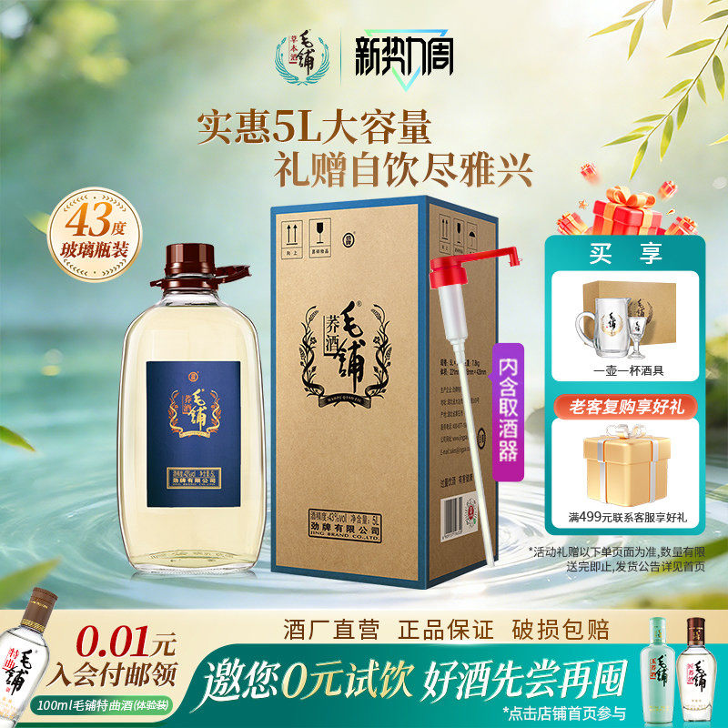 毛铺酒官方旗舰店43度苦荞酒5L桶装贺岁家庭礼新年礼盒白酒基酒水