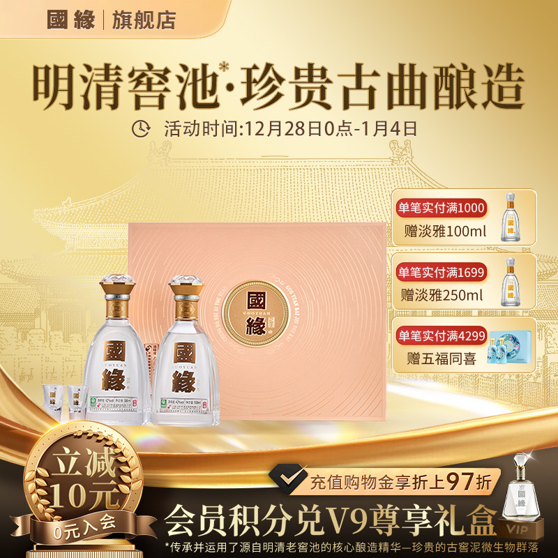 今世缘国缘对开42度白酒礼盒装500ml*2瓶浓香型商务送礼宴请酒水