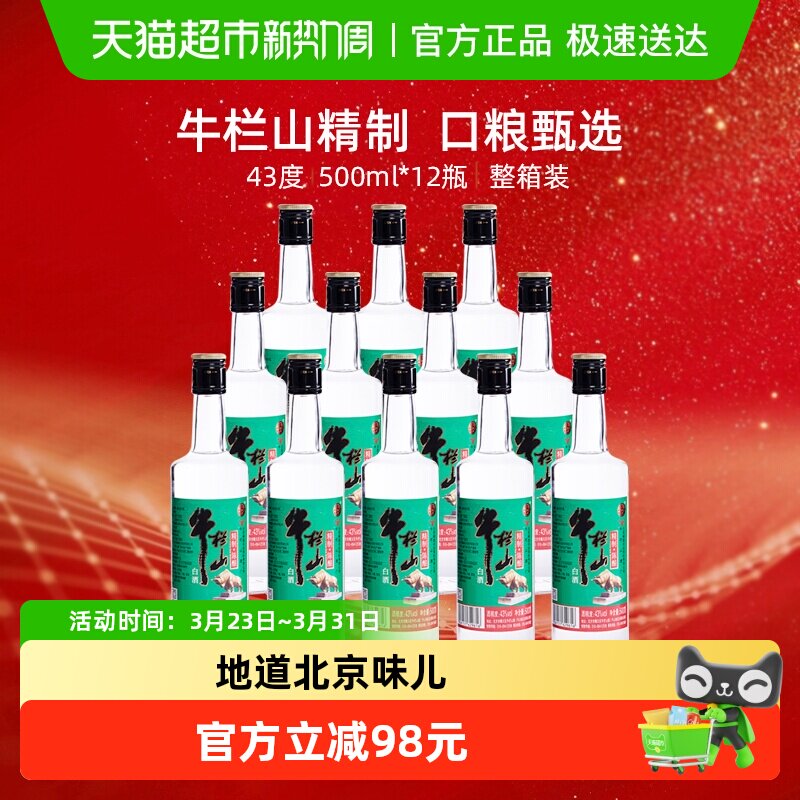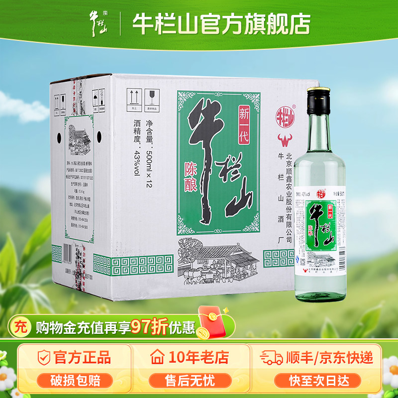牛栏山43度新一代陈酿白瓶500mlx12瓶浓香风格口粮光瓶酒水北京