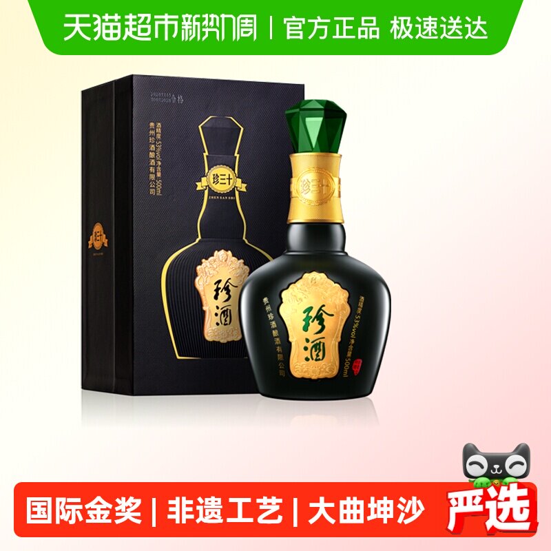 贵州珍酒珍三十53度酱香型白酒500ml纯粮酒水送礼高端礼盒