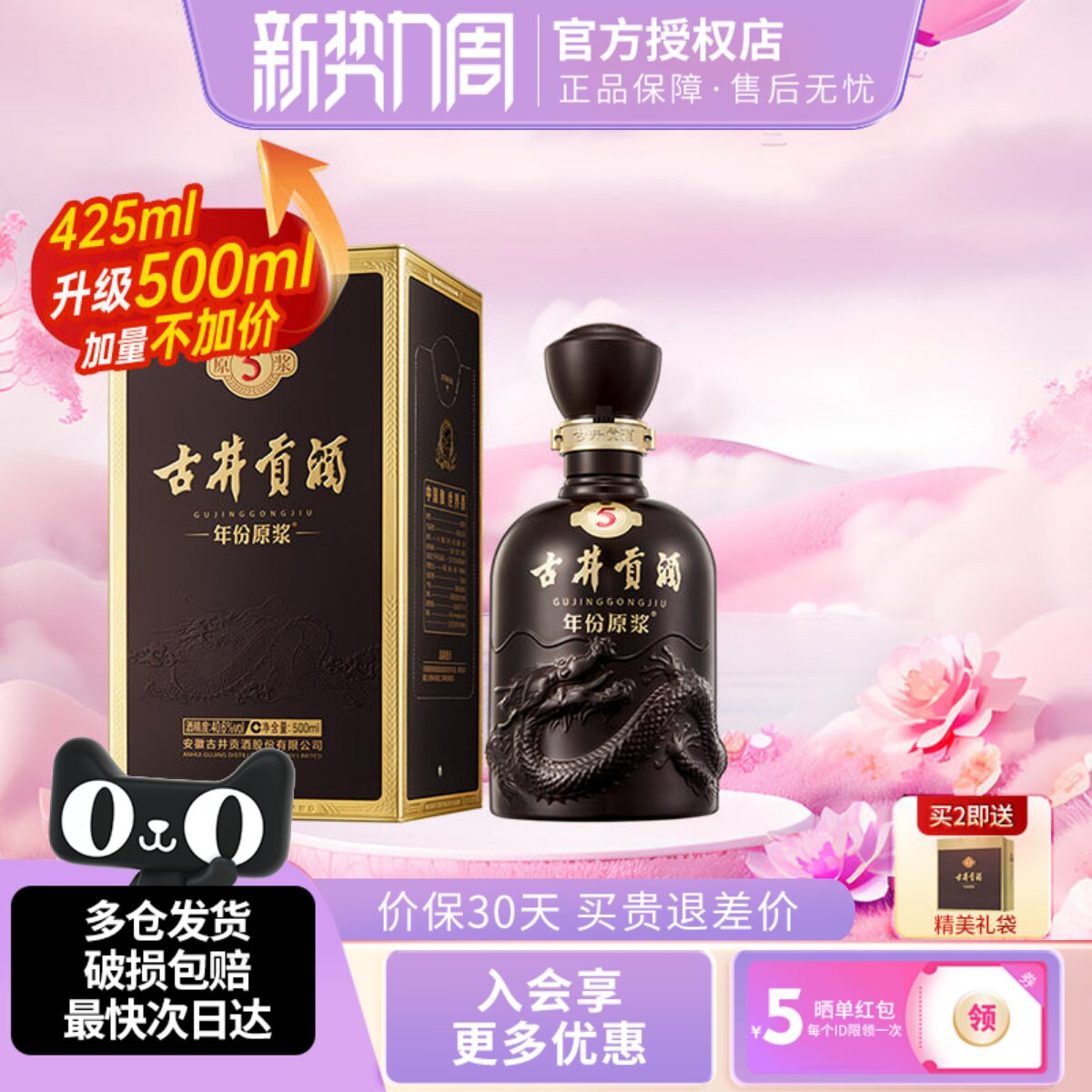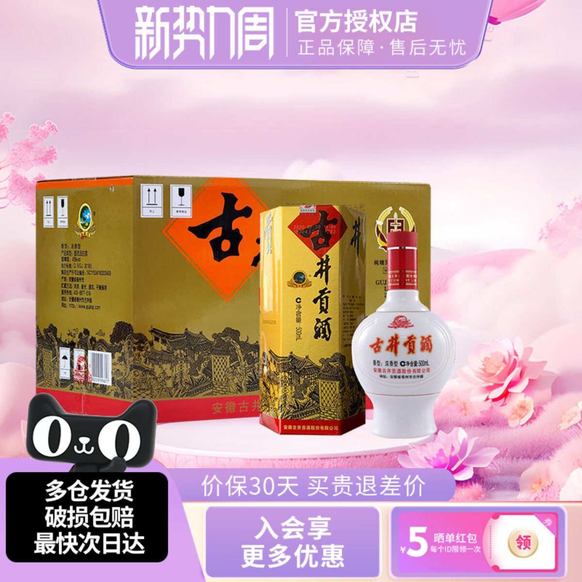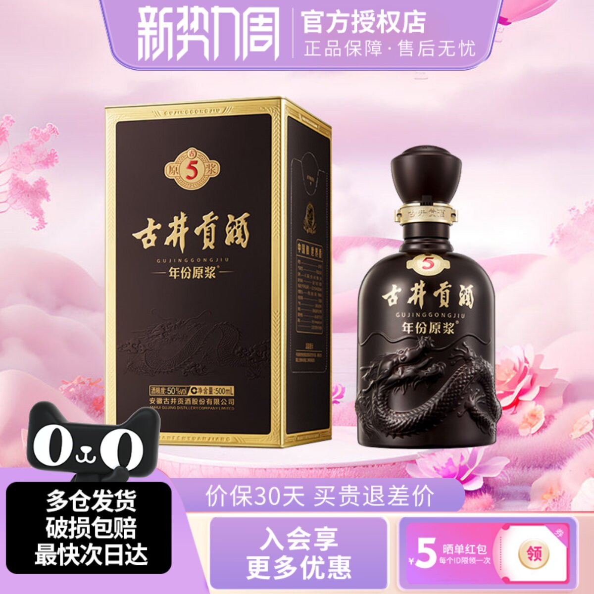 古井贡酒年份原浆50度古5浓香型白酒500ml礼盒瓶装纯粮酒水正品