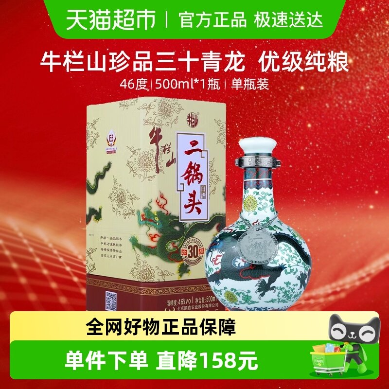 牛栏山二锅头白酒46度珍品三十(30) 青龙500ml*1瓶口感清香型酒水