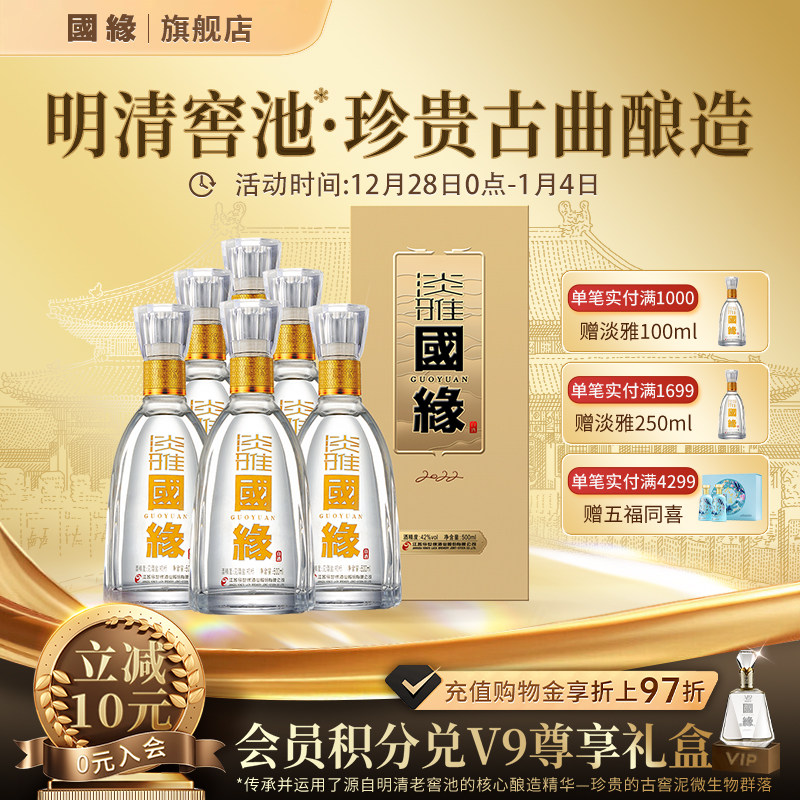 今世缘国缘淡雅42度浓香型纯粮白酒整箱500ml*6瓶婚喜宴送礼酒水