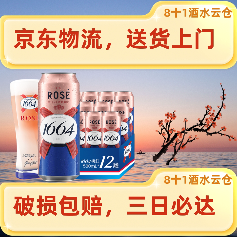 【新鲜日期】送货上门1664啤酒 桃红白啤啤酒500ml12瓶罐原箱批发