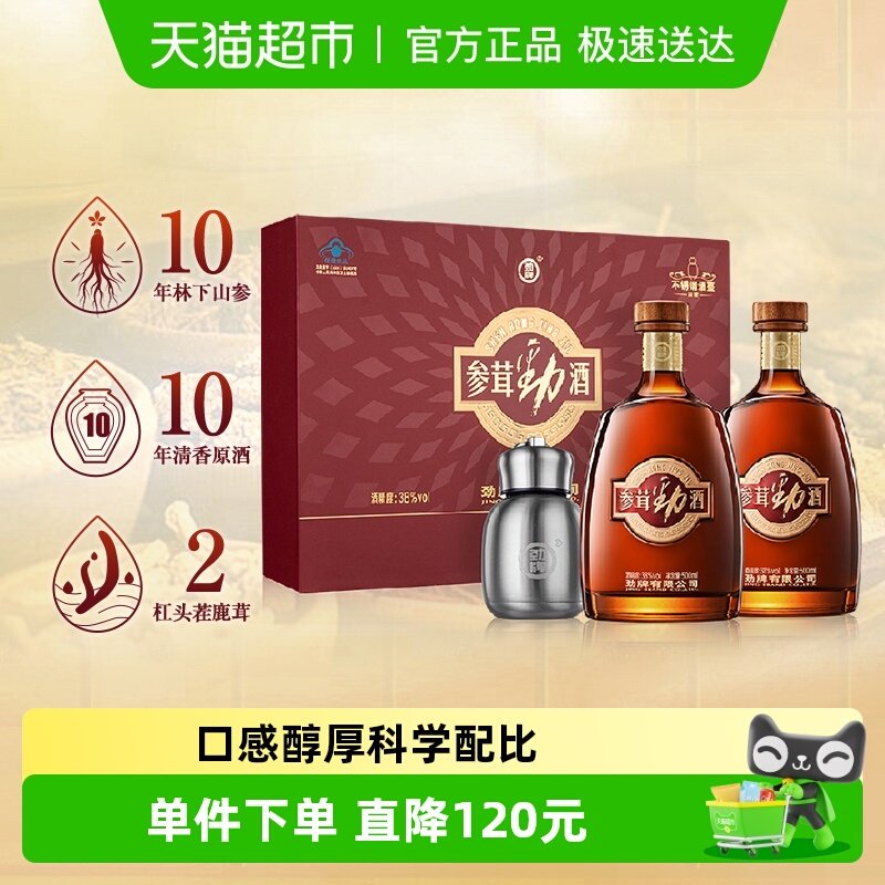 劲牌38度参茸劲酒500ml*2瓶装礼盒人参鹿茸保健酒水劲酒