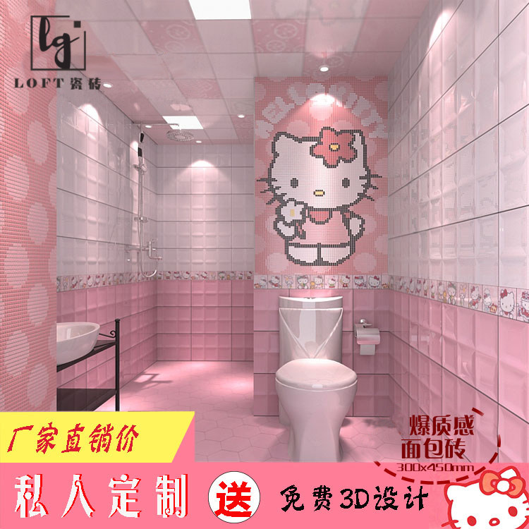 300*450粉红色 彩色墙砖粉色卫生间面包砖厨卫浴室幼儿园学校瓷砖