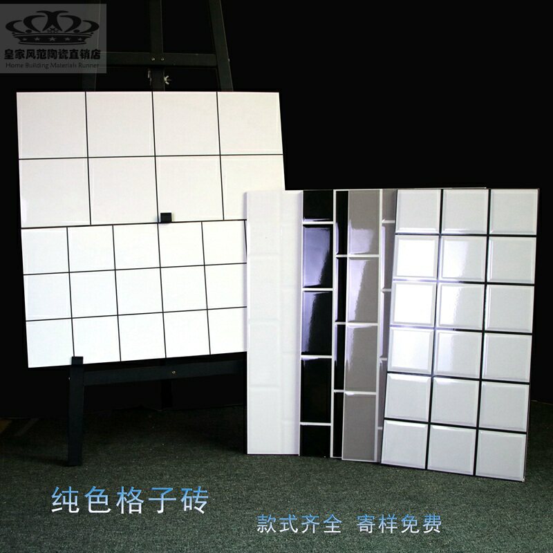 北欧黑白格子砖厕所厨房卫生间墙砖亮光瓷砖地铁砖面包砖300x600