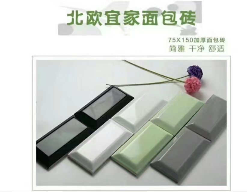 面包砖100黑白灰200瓷砖彩色厨房墙砖北欧小白砖卫生间厨卫地铁砖