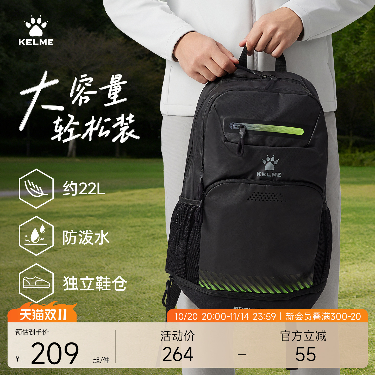 KELME卡尔美运动双肩包男女学生书包健身背包训练包带鞋仓大容量