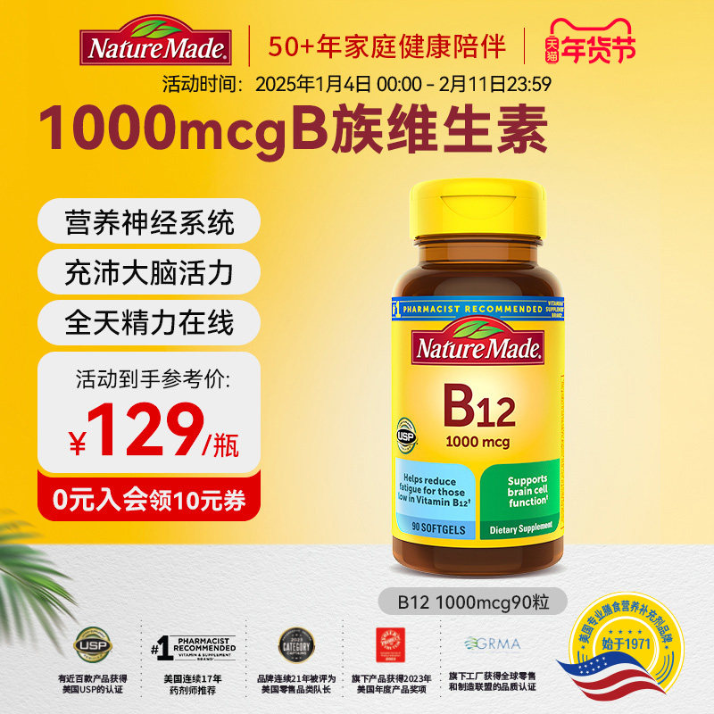 naturemade天维美美国进口维生素B族进口VB12成人胶囊90粒1000mcg