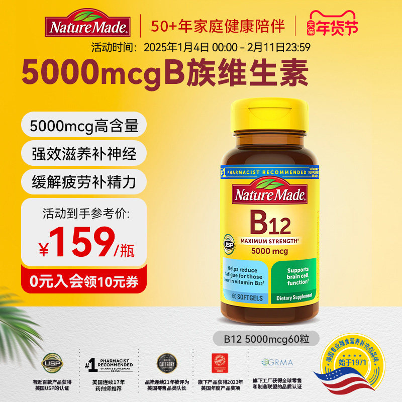 naturemade天维美原装进口b12维生素营养修复神经5000mcg胶囊60粒