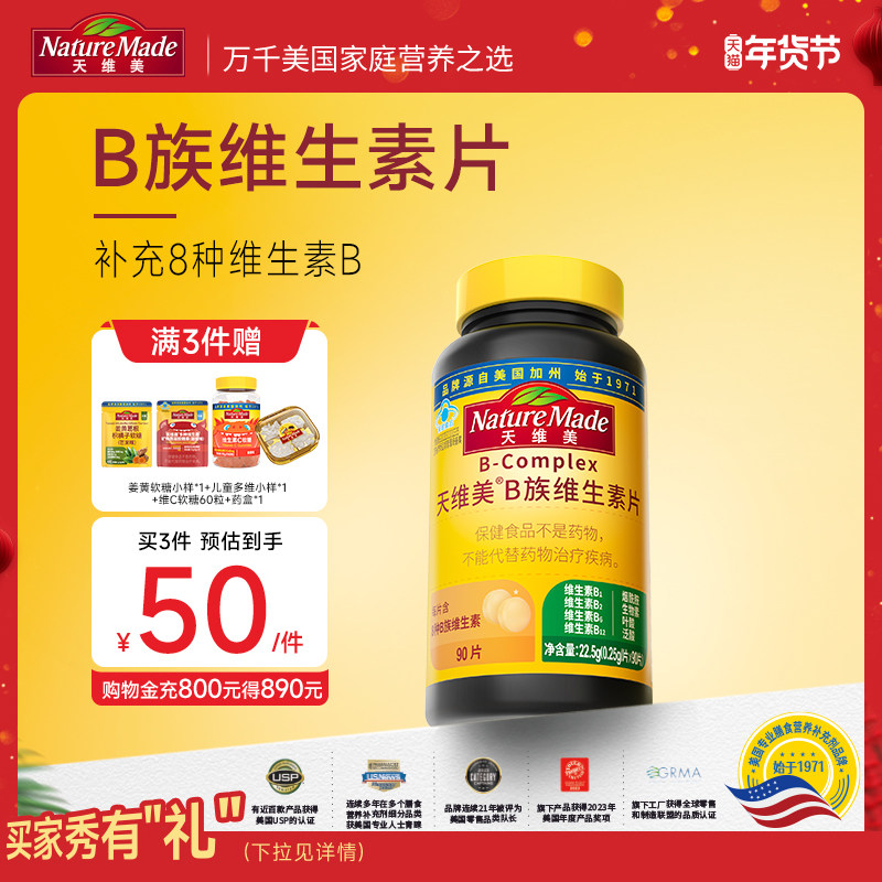 NatureMade天维美B族复合维生素片b12补充b100VB