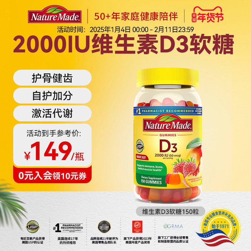 Naturemade天维美维生素D3软糖200mg促钙吸收2000iu90粒官方旗舰