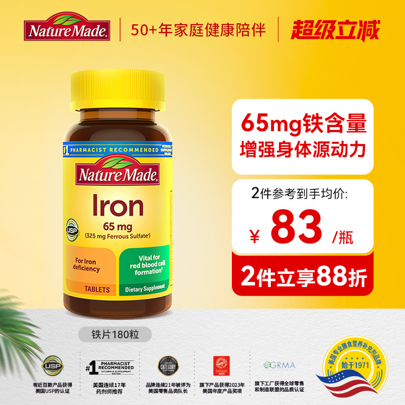 NatureMade天维美进口补铁气血片剂65mg补血女性贫血保健品180粒