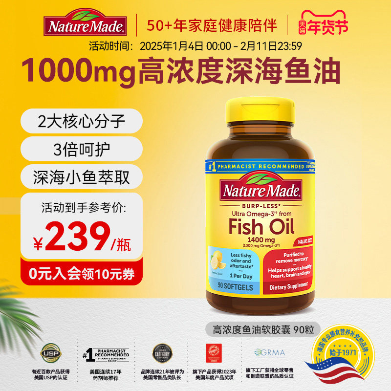 NatureMade天维美深海鱼油omega3美国进口官方旗舰店正品非鱼肝油