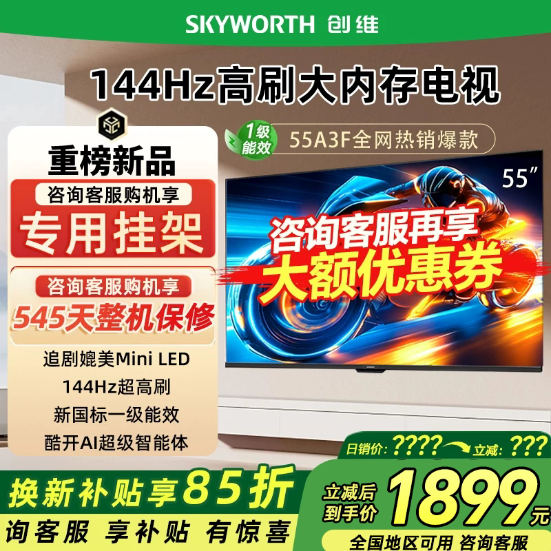 政府补贴15% 创维55A3F 55英寸4K高清 144Hz高刷智能语音电视122