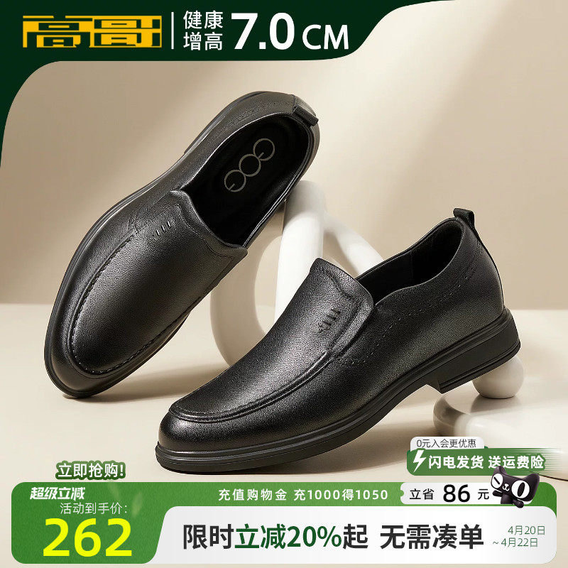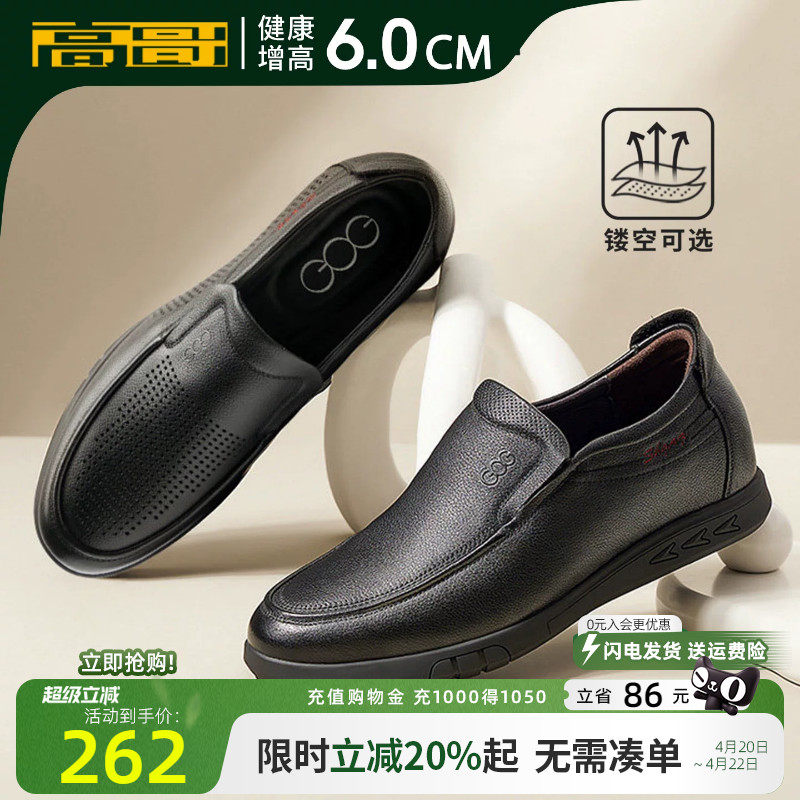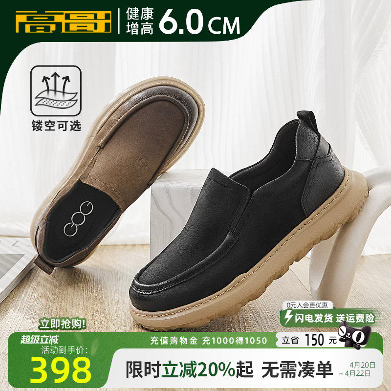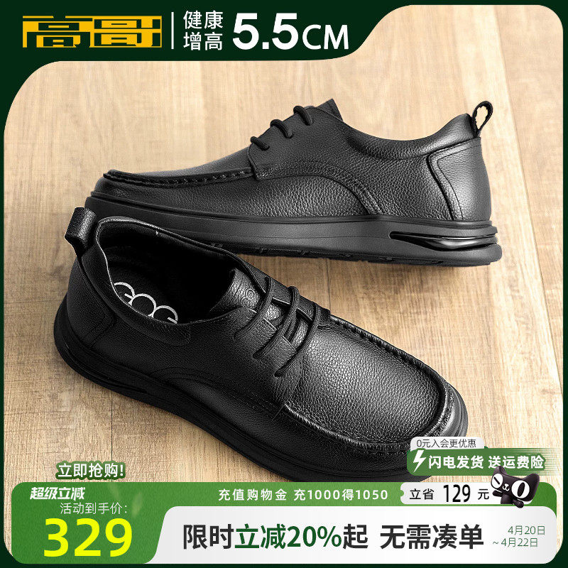 高哥增高休闲皮鞋男款真皮软面软底男鞋春季新款爸爸鞋内增高鞋子
