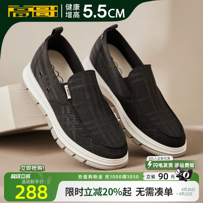 高哥内增高布鞋男款时尚休闲鞋春季新款增高男鞋轻便一脚蹬懒人鞋