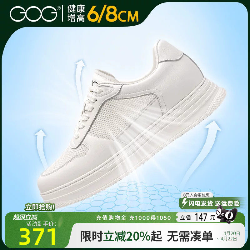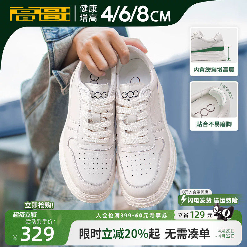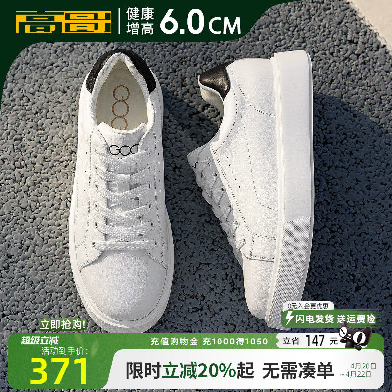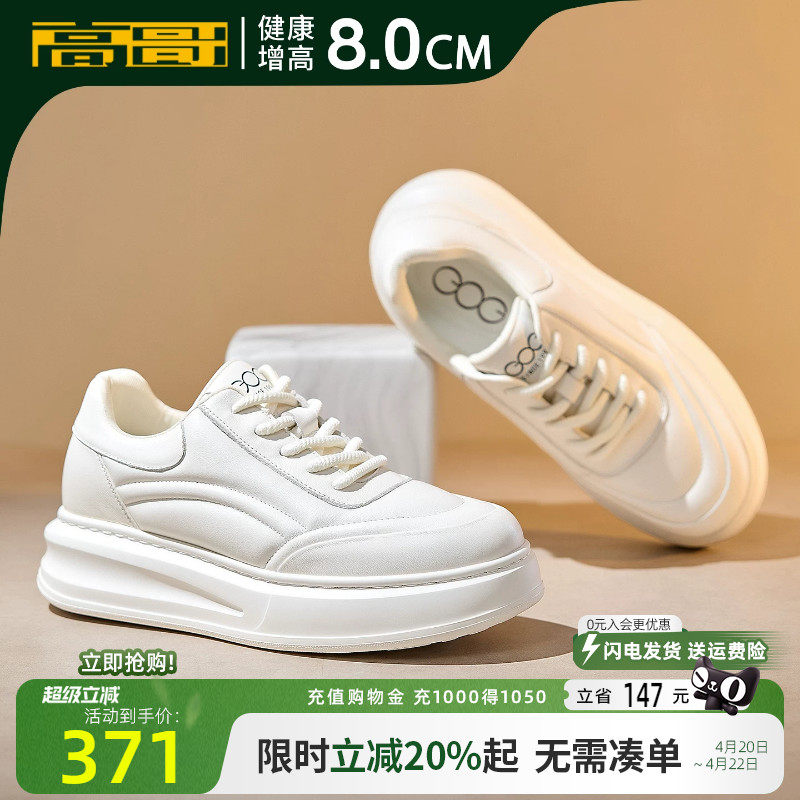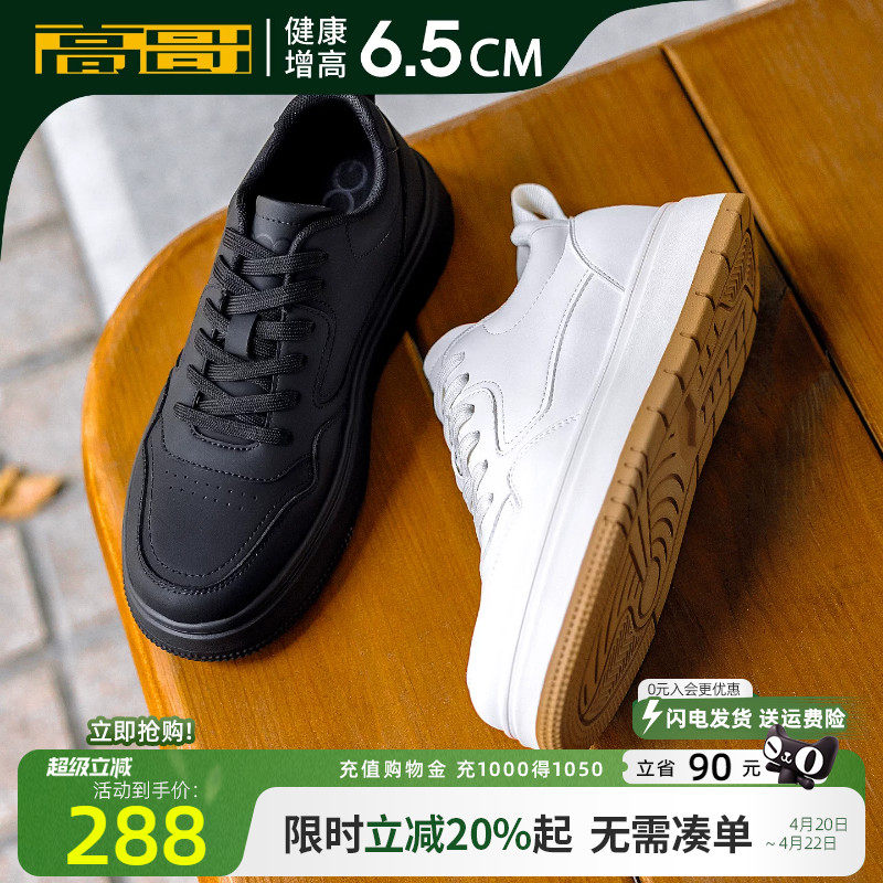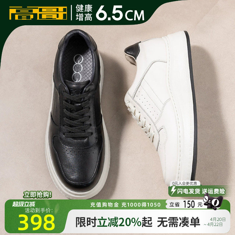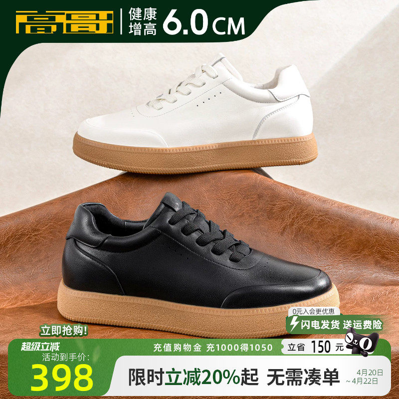 高哥增高小白鞋真皮厚底休闲男鞋子春季轻便运动鞋男士内增高板鞋