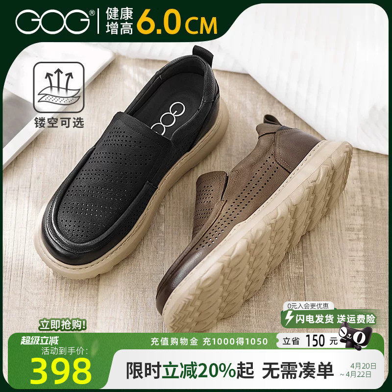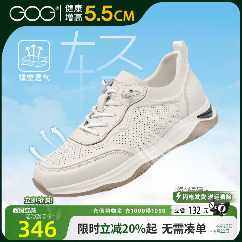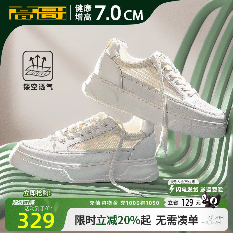 高哥增高板鞋厚底夏季镂空透气男鞋真皮轻便运动鞋子内增高小白鞋