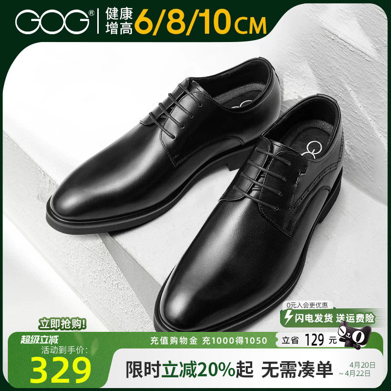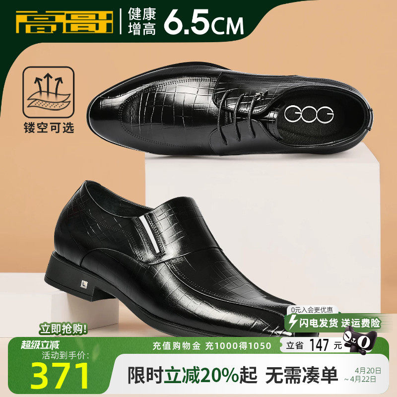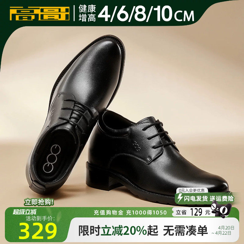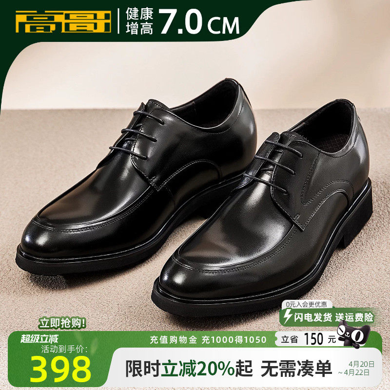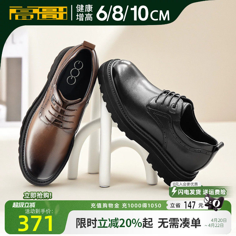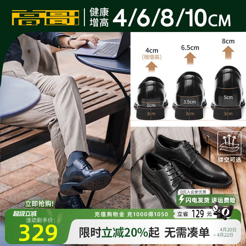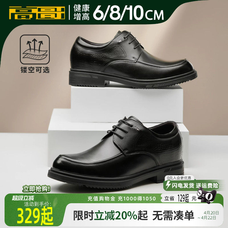 高哥增高鞋男10cm商务正装鞋子春款男鞋头层牛皮隐形内增高皮鞋