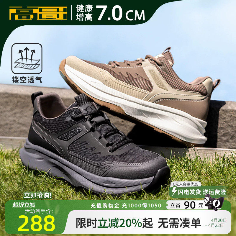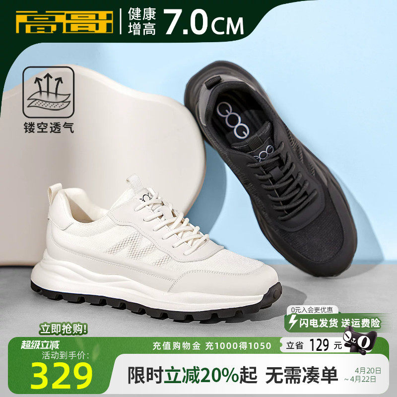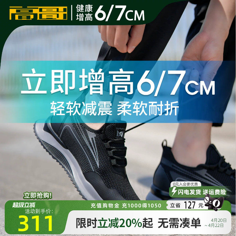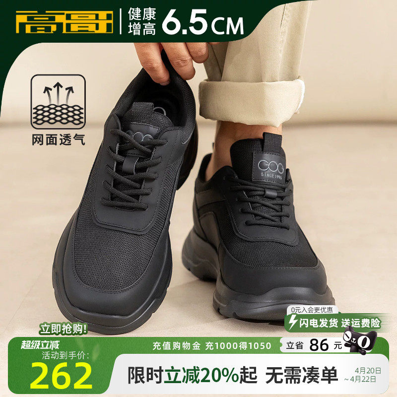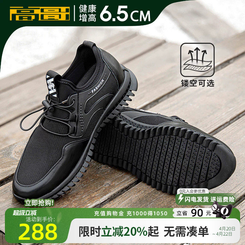 高哥增高休闲鞋男款新款缓震运动鞋网面透气软底男鞋春款内增高鞋