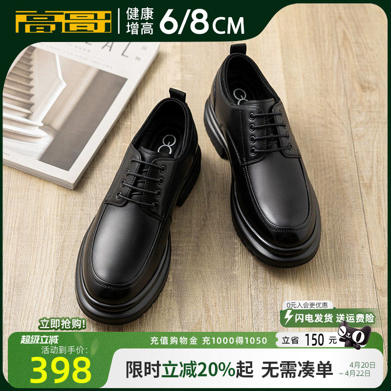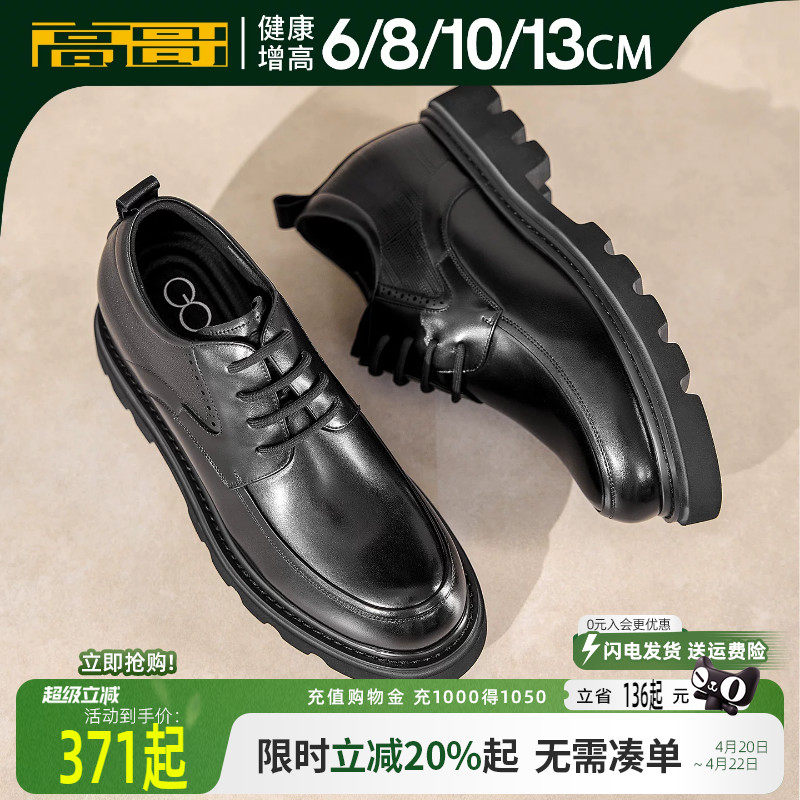高哥增高皮鞋10cm正装商务圆头新款男鞋春季真皮厚底内增高德比鞋